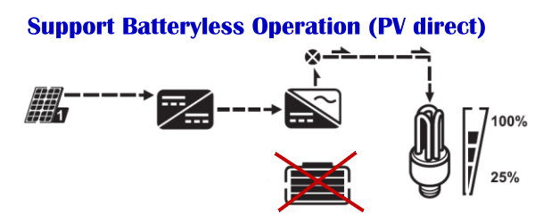 Genset starter dry contact is a standard feature in this model, and in the absence of grid, users may connect a generator for battery charging.  Only quality inverter-type generators are recommended for use.