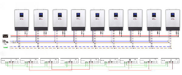 Available from 1000w to 300w, all models in this series come with a unified max 80A MPPT solar charger as well as a 60A utility charger.  Free monitoring on PC is standard and same with all our other inverters.  Below is a simple diagram illustrating parallel setup, and parallel kit (sold separately) is also required on each inverter unit.